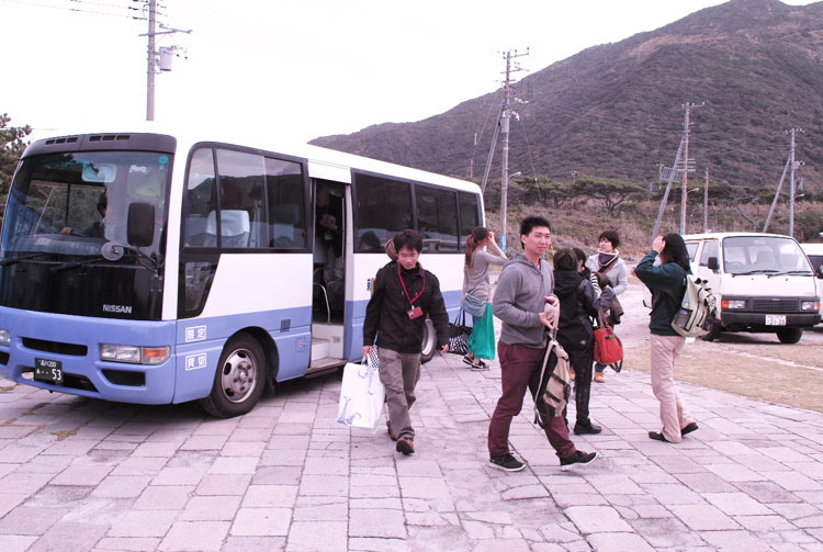新島へ到着 (1) スタッフミーティング (2)(3) 新島村役場表敬訪問 (4)
